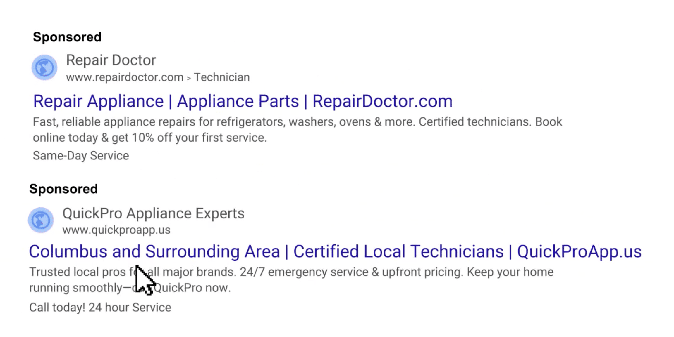 Examples: “Book Same-Day AC Repair” vs. “Schedule Fast HVAC Services”; compare ads with and without a discount or guarantee